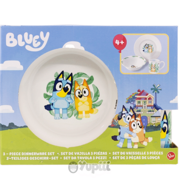 Conjunto de Refeição Cerâmica Bluey 3 Peças Caixa Presente 4+
