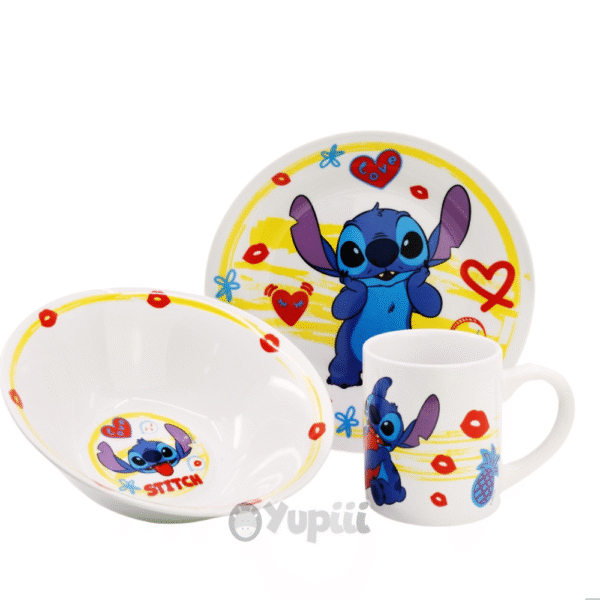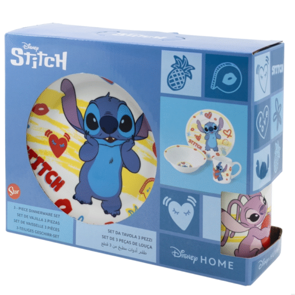 Conjunto de Refeição Cerâmica Stitch Aloha 3 Peças Caixa Presente 4+