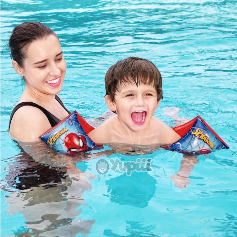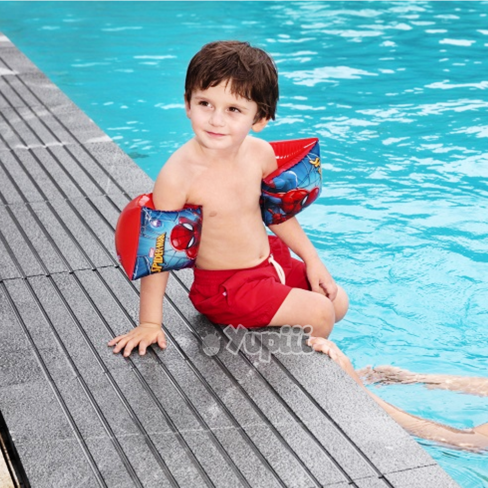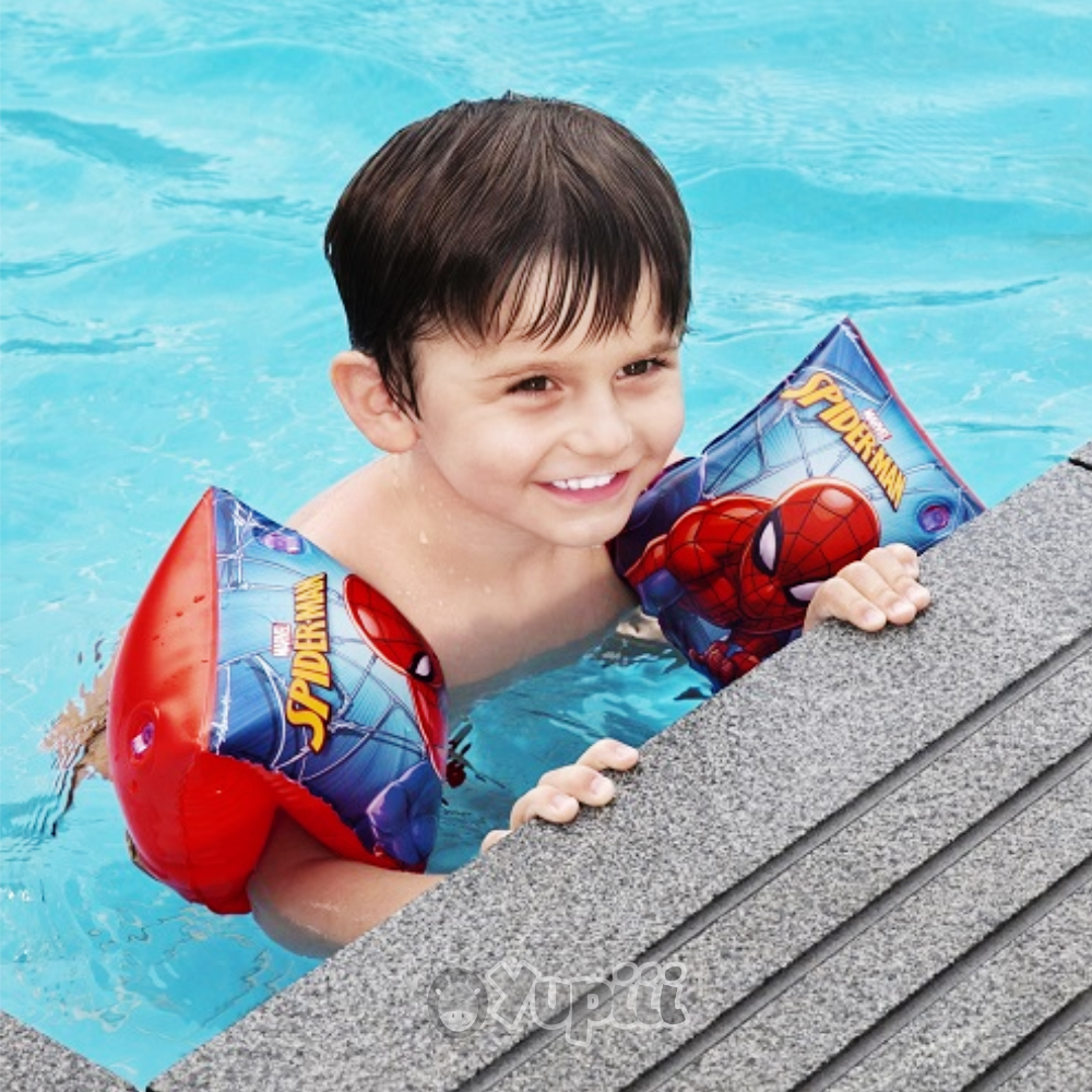 Antes de tudo, o design apresenta o icónico Spiderman em poses cheias de energia, o que deixa os miúdos ainda mais entusiasmados para vestir o seu “equipamento de super-herói”. Além disso, o formato ergonómico adapta-se perfeitamente aos braços das crianças, permitindo liberdade de movimentos durante as brincadeiras aquáticas.