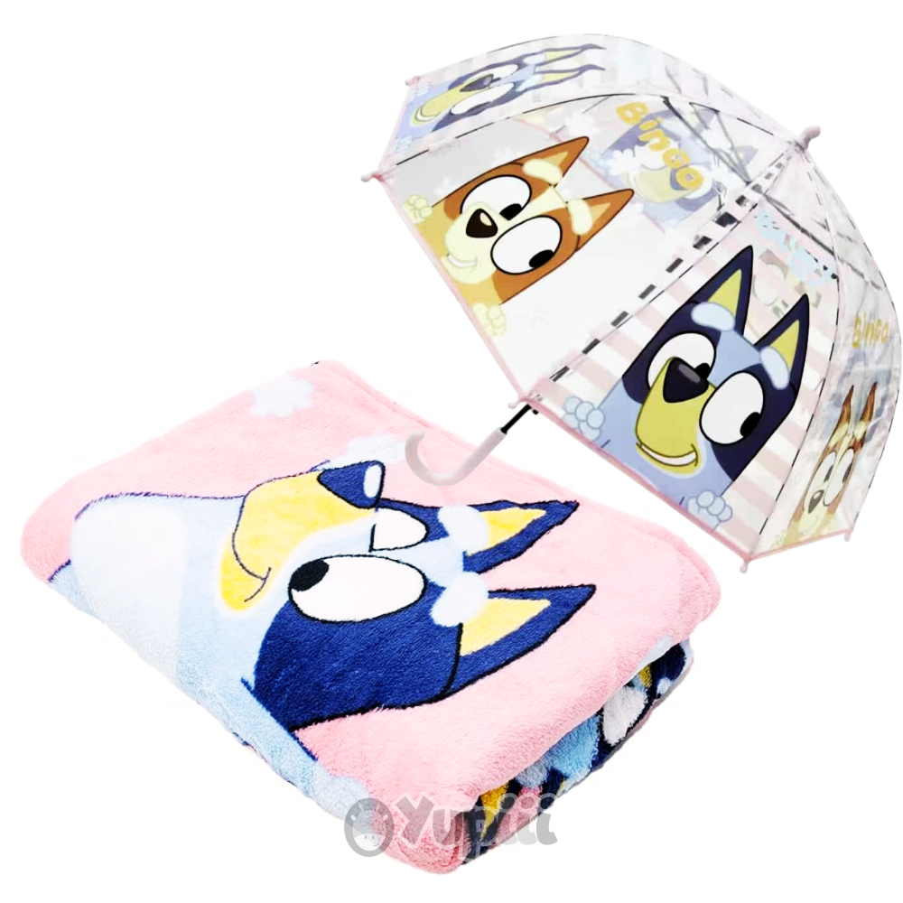 Conjunto Inverno Manta Polar e Guarda-Chuva Bluey 🌧️🐕🌸