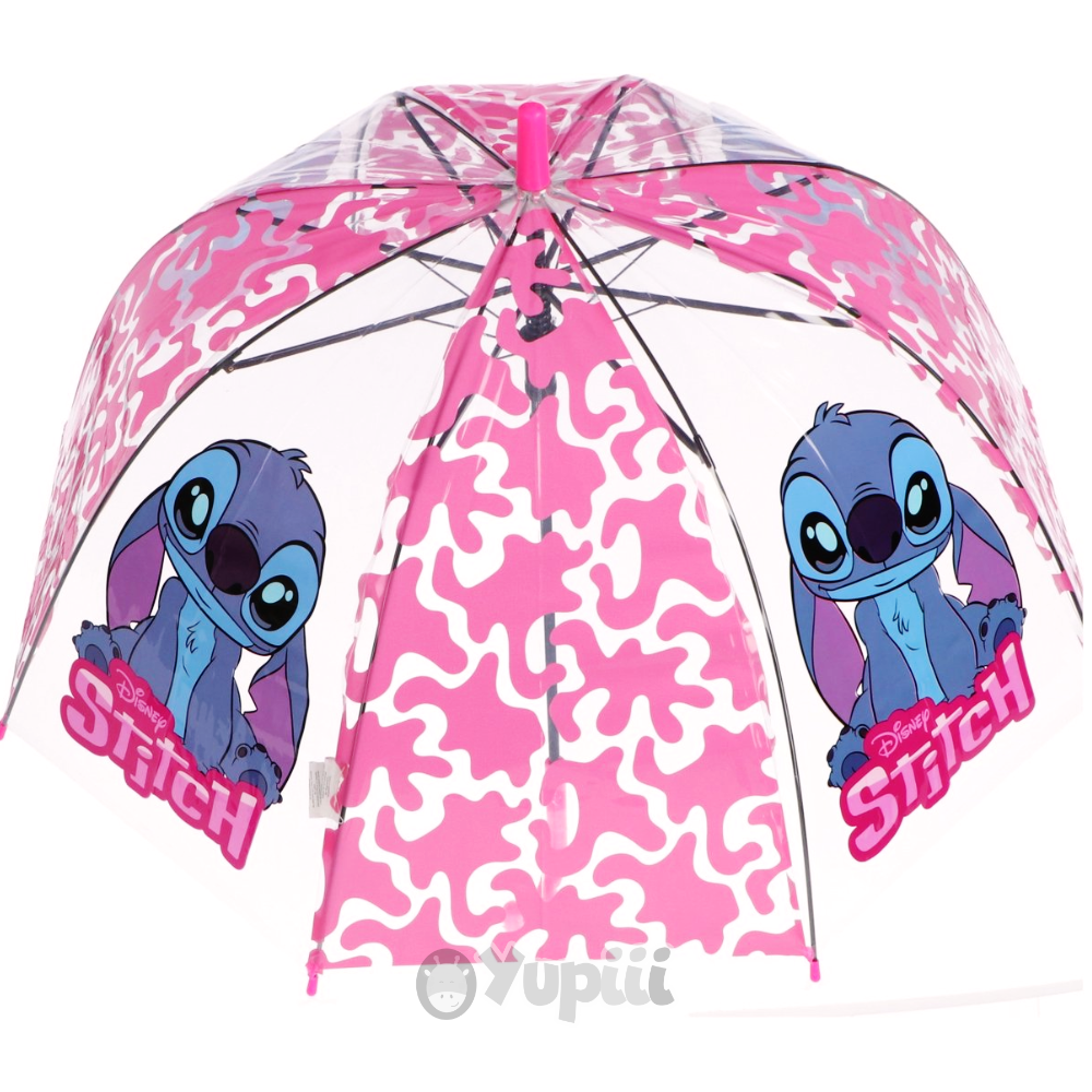 Com 48 cm de diâmetro, este guarda-chuva leve e compacto é perfeito para crianças. Além disso, o material transparente estampado com o Stitch proporciona visibilidade, garantindo segurança e um estilo encantador em cada utilização.