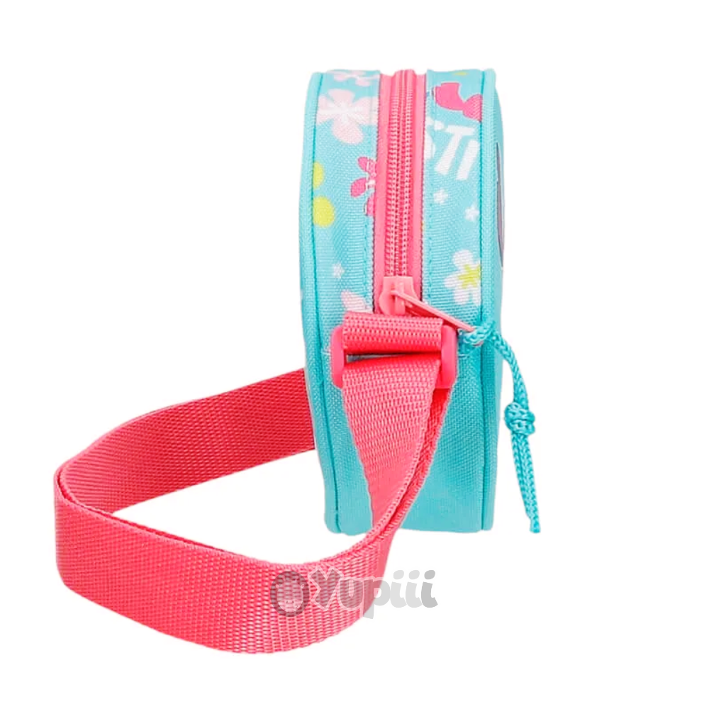 Preparado para levar o espírito havaiano do Stitch para todas as aventuras? Esta Malinha Redonda Tiracolo Stitch Aloha é a escolha perfeita para os fãs que adoram praticidade e estilo tropical! Além disso, combina um design divertido com a funcionalidade ideal para o dia a dia. Portanto, se queres um acessório único e cheio de energia, esta mala foi criada a pensar em ti!