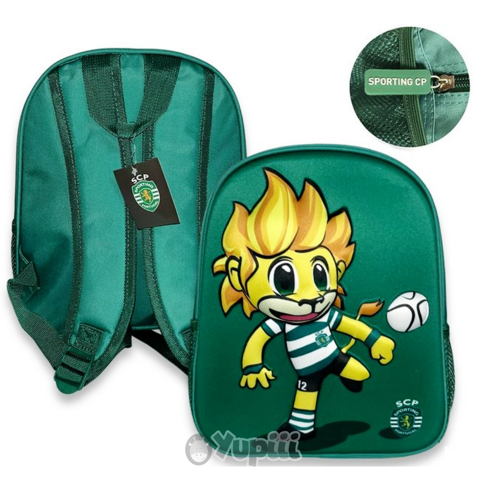 Mochila Pré-Escolar Sporting CP 3D Jubas 31cm 🦁🎒💚