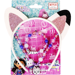 Desde logo, o conjunto inclui uma tiara deslumbrante, uma bandolete com orelhas de gatinho, um colar e uma pulseira coordenados com os motivos coloridos de Gabby’s Dollhouse. Os detalhes em rosa, roxo e azul replicam fielmente o universo cativante da série. Consequentemente, torna-se não apenas um acessório, mas uma experiência de imersão no mundo da Gabby. Além disso, os materiais brilhantes e texturizados cativam a atenção das mais pequenas!